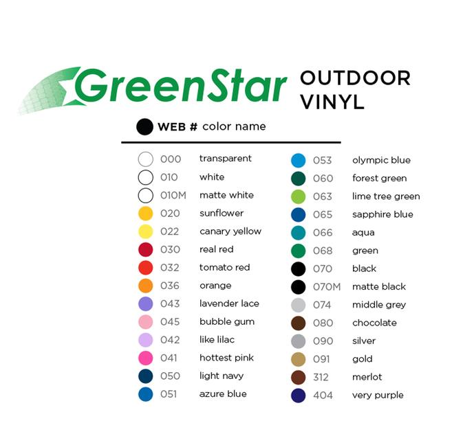 Greenstar 5 Year Indoor/Outdoor Vinyl Color Chart