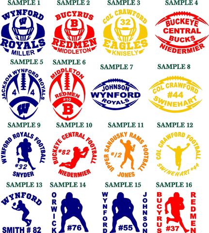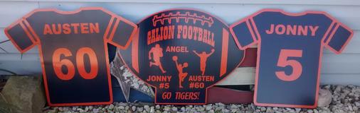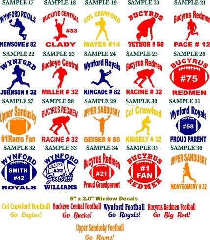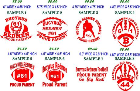 Grandparents and Fans to Support your favorite player orTeam. Your School or Team names or Team and Player Name and Number. $5.00 & UP plus tax. Most Sizes are 5.0" X 5.0" Will change colors for your team. Want a larger size that's no problem. price will depend on what size you need. Backing in pictures are for illustration only. ACTUAL WILL LOOK LIKE JALON'S ABOVE