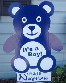 Boy or Girl Teddy Bear New Baby Announcement Yard Sign $15.10. Baseball & Other Shapes $15.75. Price Includes Attractive Spider Stake. Please email Your Preference and Babies Name. steve@bucyrusblitz.com